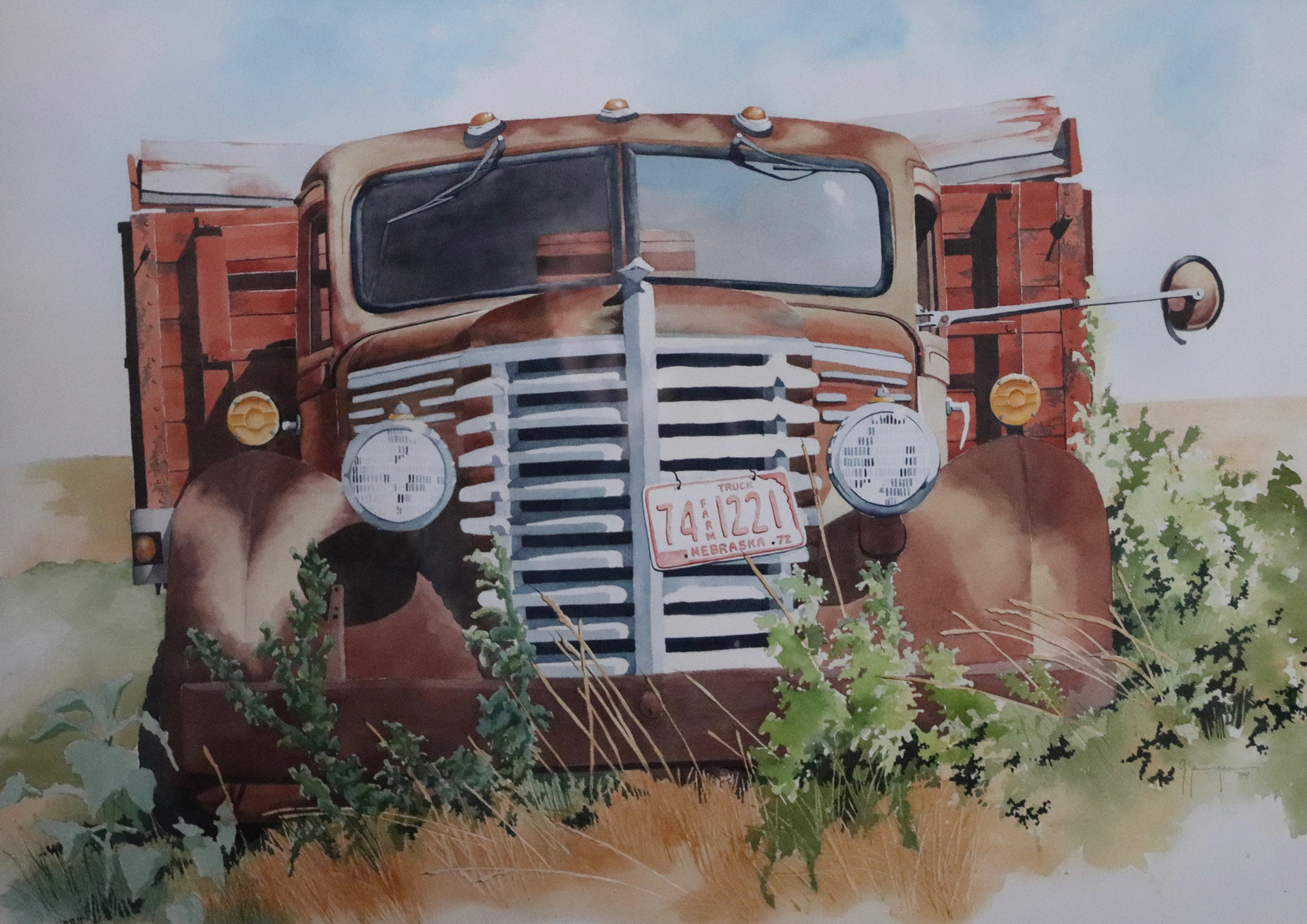 Watercolor 2007-19 This painting was painted in the studio from the artist's photos of the truck located at 8095 N. Foothills Hwy. Boulder, CO. This painting has been displayed in numerous exhibits including Rocky Mountain National Park Centennial Show, Estes Park, CO, 2015; Group of Us Show, Denver, CO, 2013; Retro Barbers LLC, Arvada, CO, 2012; "This Is Colorado" Heritage Fine Arts Guild Exhibit at the Madden Museum, Greenwood Village, CO, Honorable Mention, 2012; 14th Annual Colorado Visions, Westminster, CO , Merit Award, 2011; 15th Annual State Exhibition, Colorado Artists Guild, Alpine Fine Art Center, Denver, CO, 2nd Place Award, 2010; 29th Annual International Exhibition, San Diego Watercolor Society, San Diego, CA, 2009; Great 8 Exhibition, Kansas Watercolor Society, The Wichita Center for the Arts, Wichita, KS, 2008. This painting is part of the artist collection.
